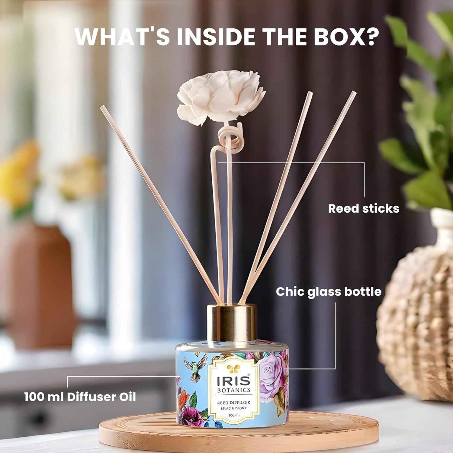 Iris Botanics Reed Diffuser Set | with 100ml Oil Fragrance Lilac & Peony |Stress Relief & Aromatherapy | Long-Lasting, Smoke-Free Air Freshener for Home, Bedroom & Office | Ideal for Gifting.