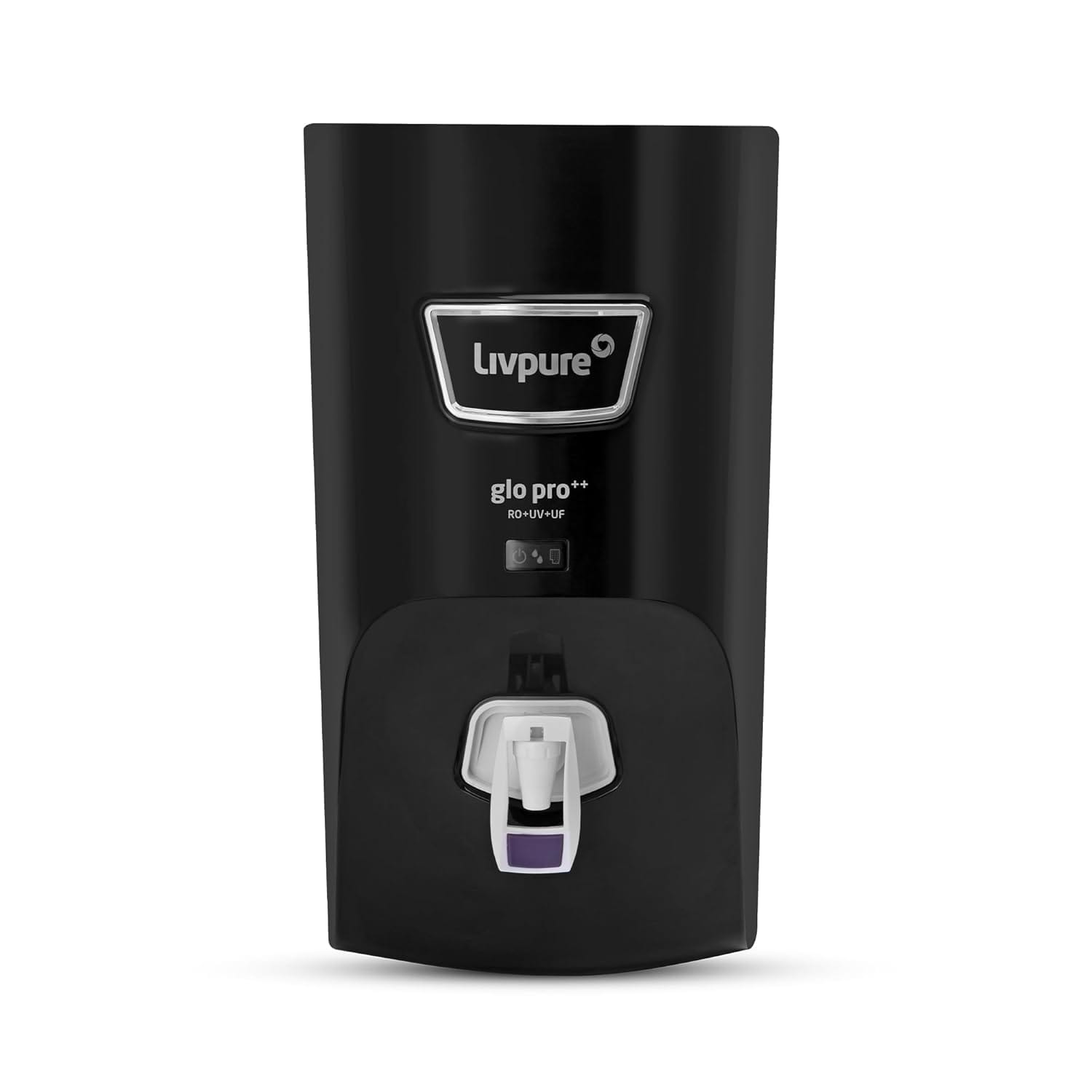 Livpure GLO PRO++ RO+UV+UF | Water Purifier for Home – 7 L Storage | Free Standard Installation | Suitable for Borewell, Tanker, Municipal Water | Black